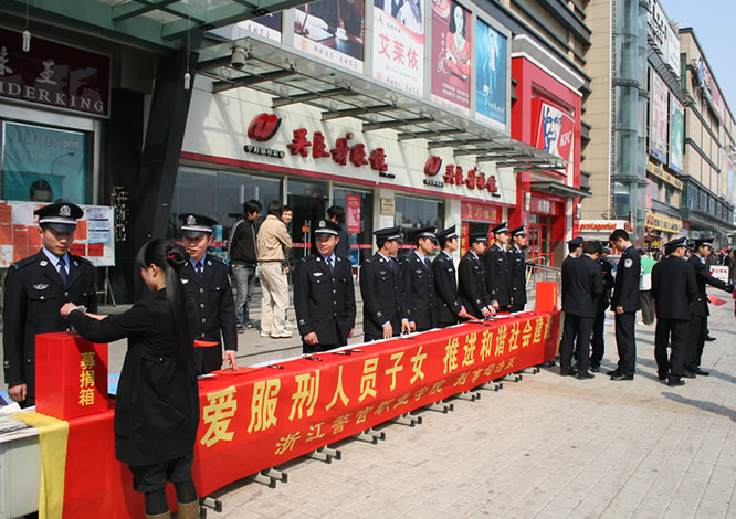 3月5日,是学雷锋日,也是我省首个志愿者日。我院刑事司法系组织同学在下沙物美超市门口举行了“关爱服刑人员子女 推进和谐社会建设”宣传暨爱心募捐活动。“关爱服刑人员子女 推进和谐社会建设”活动是刑事司法系于去年开拓的公益活动及社会实践活动。通过走访和捐助活动,将社会关爱的触角延伸到服刑人员未成年子女这个被社会尚在忽视的弱势群体。该项活动在社会上产生了良好影响,并得到了《浙江日报》的专题报道。根据服刑人员未成年子女状况所撰写的社会调研论文还获得了浙江省高职高专院校首届“挑战杯”创业创新竞赛特等奖。这次在下沙举行的宣传和募捐活动是该活动的继续和推广。