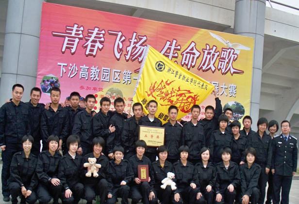 2008年11月22日,浙江下沙高教园区管委会组织开展了第一届大学生“青春飞扬,生命放歌”素质拓展大赛,由我院安全防范系学生组成的“燃烧军团”代表学院出赛。最后经激烈角逐,我院代表队取得团体第二的好成绩,其中吴飞英和施青锋同学荣获“团队之星”称号。