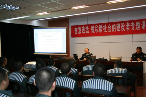 浙江省第一监狱是一所重刑犯监狱,在监狱教育改造方面有很多亮点与特色。该监的“启迪电视台”就是由罪犯自拍、自演、自编的省内第一家监狱电视台;该监的罪犯心理咨询与矫治工作也一直走在全省监狱单位前列,他们率先创办了《心理导刊》,在该监设立的心理咨询中心是浙江省的心理矫治基地,该中心培养的心理咨询师已占到该监民警总数的10%以上。在发展过程中,他们也迫切需要与警官院校开展深度合作,以此推动监狱工作进一步科学快速发展。12月7日,受该监邀请,刑事司法系副主任周雨臣、马立骥两位教授到该监狱开展了行业服务工作。期间,周雨臣教授为服刑人员作了“奋发改造,做和谐社会的建设者”的专题讲座;马立骥教授为所有心理咨询师民警就“监狱心理咨询师成长的思考”话题与民警进行了深入的交流与研讨。