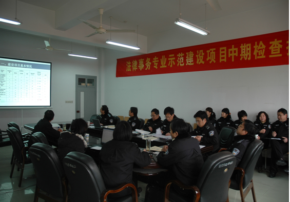 2010年1月22日上午,法律事务专业示范建设项目中期检查汇报会在法律系会议室召开。黄兴瑞院长、金川副院长、各相关职能部门负责人以及法律系全体教师参加了会议。