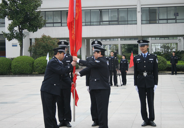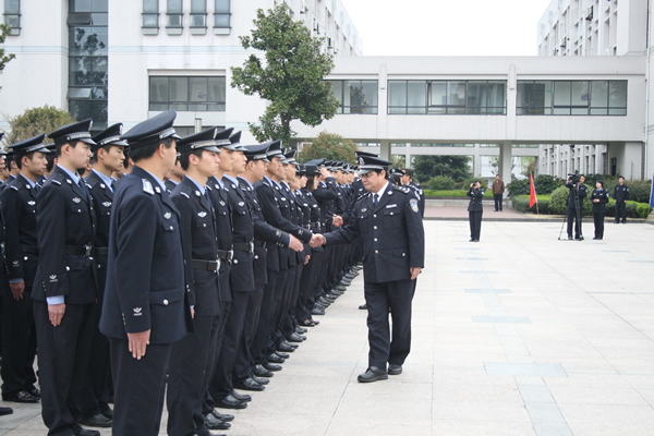4月8日早晨,春寒料峭,浙江警官职业学院广场上却激情飞扬、热情涌动,印有“浙江警官职业学院‘环沪护城河’安保执勤突击队”的出征旗帜在风中飘扬,300名学生英姿飒爽、精神振奋、整装待发。出征仪式上,学院的领导和老师们纷纷走进队列,与出征学生一一握手。院长黄兴瑞的动员讲话简短而激情慷慨,他要求全体出征队员在执勤工作中一切行动听指挥,做纪律严明、勇于担当的警院人。他说,警院人流汗流血都不怕,要誓为国家荣誉而战,誓为上海世博会和人民百姓的安定团结而战。在学院党委书记周祖勇宣布突击队出征的号令中,300名学生警力正式出征。