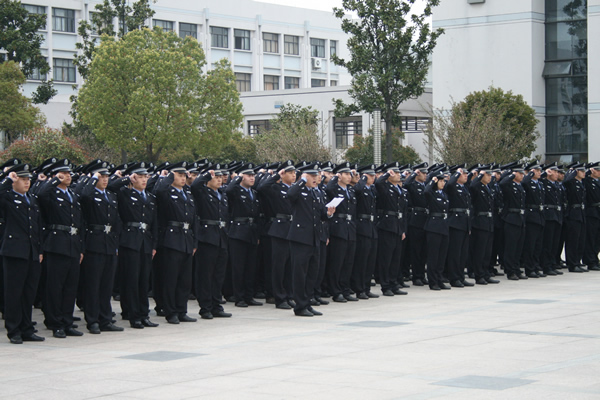 “服从命令,听从指挥;坚守岗位,恪尽职守;按规办事,严守纪律;言行严谨,不辱使命!”铿锵的宣誓声在浙江警官职业学院中心广场上响起,4月8日早上8时30分,浙江警官职业学院300名赴嘉兴增援上海世博会“环沪护城河”安保执勤突击队员在学院中心广场举行庄严的出征仪式。