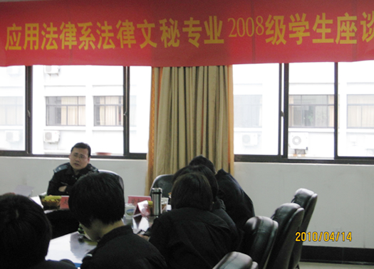 4月14日下午,应用法律系在系会议室组织召开了法律文秘专业2008级学生恳谈会,08级法律文秘专业近30名学生代表参加了会议。恳谈会由应用法律系法律文秘专业负责人赵保胜教授主持,应用法律系副主任黄素萍,法律文秘专业教师陈建国、彭建新、何成兵、李爱等教师参加了恳谈会。