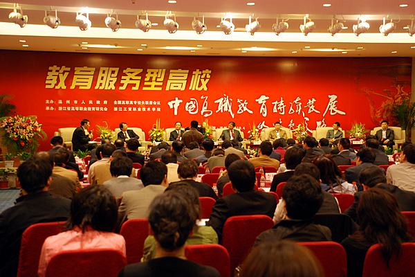温州市委常委、常务副市长彭佳学,浙江省教育厅高教处副处长金仁康等领导到会致辞。全国人大常委会委员、全国人大教科文卫委员会委员、教育部原副部长吴启迪发表主题演讲。吴委员指出,我国已经进入后工业化时期,对高级技能型人才有长期的旺盛需求,高职院校大有可为。高职院校要紧跟产业、行业的发展需求,找准所开设专业的就业岗位。吴委员指出,高职院校要加大高级技工、技师等职业技能型人才的培养力度,注重培养学生的实际动手能力和可持续发展能力,鼓励学生自主创业,多渠道多形式解决高职毕业生的就业率,同时提升高职毕业生的就业质量。吴委员强调,高职院校要注重质量建设和内涵发展,任何不注重质量的教育都是不可持续的。高职院校要关注就业,未能解决就业问题的职业教育是失败的。高职院校要密切关注“十二五”规划所涉及的产业调整,并适时调整专业结构。