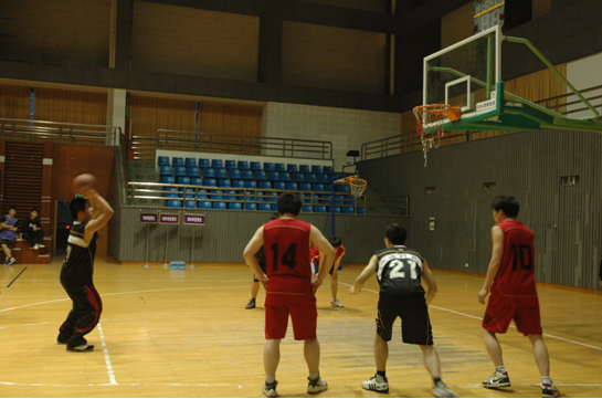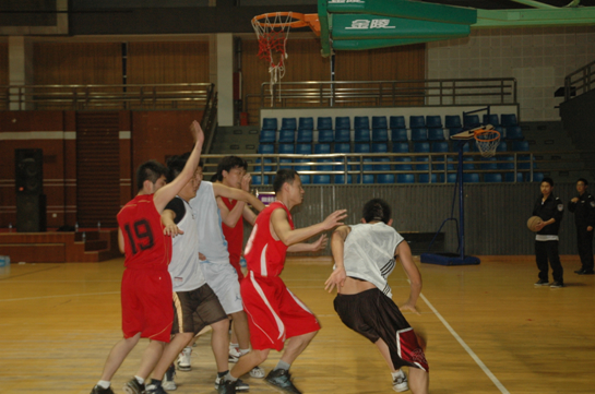 以体育为媒介,以篮球为桥梁,2010年4月21日,应用法律系与浙江省未成年犯管教所在我院警体馆举行了一场篮球友谊赛,以此推进双方友谊合作交流的步伐。 比赛双方实力均衡,球员们干净利落的扣篮、激烈顽强的争抢使比赛异常精彩,吸引了在场观众的眼球,赢得了阵阵掌声和喝彩声。最终东道主以59:70的比分结束比赛。 此次比赛发扬了“友谊第一,比赛第二”的精神,达到了交流感情的目的。通过体育的媒介和桥梁作用,加强了警院师生和行业单位的紧密联系。 应用法律系队员专注投篮队员带球突出重围
