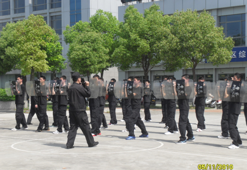 为使世博安保执勤学生尽早投入执勤工作, 2010年5月11日,应用法律系31名援嘉执勤学生在学院代队教官与嘉善巡特警大队训练教官组织下进行了一次防爆技能训练。