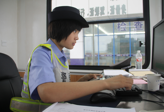 世博安检申嘉湖高速姚庄卡点的工作需要体力,胆识与智慧,“五班四轮制”24小时的工作制度不仅要求大家时刻保持专心的工作态度,同时也需要极大的体力支持,日夜颠倒的工作对于男生而言也是极大的挑战,何况是女生,但是凭借着那份崇高的使命感和坚强的意志力,她们――安检工作的唯一6名女生,在这个喧嚣但却机械的高速安检岗位上,淡忘了自己是爱美的小女生,暂时告别了梳妆打扮。用她们一样工作、一样生活、一样快乐,把属于她们的热忱与激情投入到这个世纪博览会。
