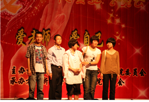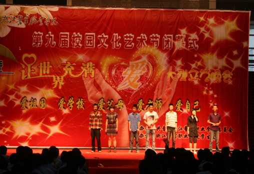 2010年6月9日晚18时,我院第九届校园文化艺术节闭幕式暨“让世界充满爱”大型文艺晚会在警体馆圆满落下帷幕。学院副院长钱美兰,团委副书记李步其及部分学管队长出席了此次活动。