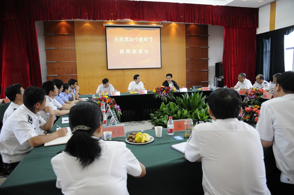 赵厅长指出,广大教师是警院宝贵的资源、宝贵的财富。警院的新一轮改革发展,需要一支师德高尚、业务精湛、结构合理、充满活力的高素质教师队伍。警院党委要进一步加大对教师的培养力度,切实做好吸引人才、留住人才、培养人才、关爱人才、用好人才这篇文章。要深入推进“双师型”教师队伍建设,改善教师队伍的梯次结构和专业结构,着力培养一批政治素质好、教学能力强的“名师”;通过组织教师到省外、国外交流学习等途径,拓宽教师视野,提升教学品质。要积极建立与行业人才双向流动的体制机制,聘任具有实践经验的行业专家担任兼职教官,鼓励和引导教师到行业挂职锻炼,增强教师解决行业实际问题的能力。要用好用足相关政策,尽最大努力解决教师的待遇问题,进一步激发广大教师投身警院教育事业的积极性和创造力。