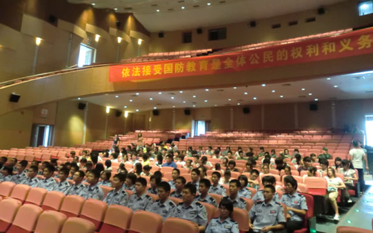为迎接全国第十个国防教育日的到来,9月17日下午,我院组织40名学生到中国计量学院参加了由下沙开发区管委会举办的国防教育宣传活动。 在本次宣传活动上,同学们认真聆听了浙江大学李风旺教授作的关于“全球化时代的中国国家安全”的报告。报告内容丰富,让同学们进一步理解了什么是国家安全,认清了中国当前所面临的国内外安全形势,懂得了依法服兵役的重要性和神圣性,增强了同学们的从军意识、爱国热情。 此次国防宣传教育对同学们既是一次国防教育知识的普及,又是一次很好的爱国征兵动员!