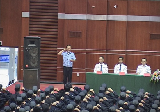 誓师大会上,在团委副书记李步其的带领下,千余名师生共同宣誓,决心顽强拼搏,不辱使命,在汇报演练中充分展示我院“忠诚 责任 奉献”的警魂精神和“特别能吃苦,特别能忍耐,特别能战斗,特别能奉献”的监狱劳教人民警察的职业精神,同时,打造我院警体技能教学的精品力作,为全省监狱劳教人民警察岗位练兵汇报演练写下浓墨重彩的一笔。