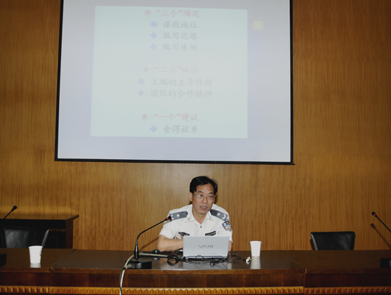 培训会上,应用法律系主任唐长国教授介绍了编写出版教材的体会。他说,在教材编写过程中,必须明确该教材的课程地位、编写思路、编写体例。其中,有两点体会最深刻:一是主编的主导作用,主编一定要尽心尽责,发挥合作者的编写特长,大胆组织开展编写工作;二是团队的合作精神,在主编带领下,对前期工作进行认真的计划筹谋,按照“创新有特色、出高质量教材”的思路,制定教材编写提纲,规划编写进度,分工落实,推进工作的总体进程。