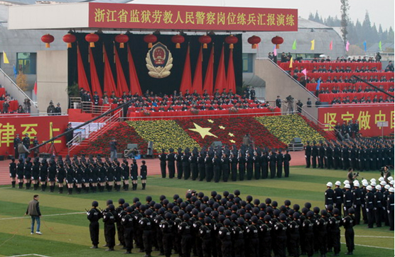 深秋时节,万物落红,明媚的阳光下闪耀着一张张写满收获喜悦的笑脸。11月26日下午,伴随着雄壮激昂的音乐,由省司法厅组织的监狱劳教人民警察岗位练兵汇报演练在省乔司监狱拉开了序幕。由我院学生和省属监狱劳教单位的基层民警组成的十七个分列式方队,共计2500余人参加了这次汇报演练。省委书记赵洪祝、司法部副部长张苏军以及省人大、省政协、省高院和武警浙江总队等机关单位的领导共同检阅了演练方队。