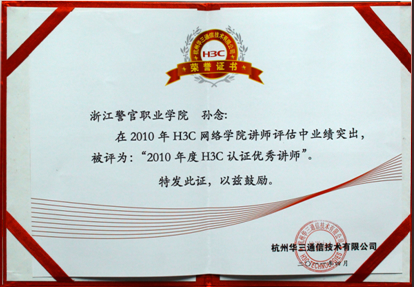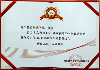 在近日召开的杭州华三通信技术有限公司(H3C)全国网络学院2011年会上,信息技术与管理系凌彦副主任荣获 “H3C网络学院优秀管理者”称号,在全国300多所网络学院中,仅有17人获此殊荣。 同时,信息技术与管理系计算机网络技术教研室孙念老师荣获“H3C网络学院优秀讲师”称号,在全国700多名H3C网络学院讲师中,仅有20名老师获此殊荣。 目前,我院计算机网络技术专业教师已有2人获得H3C高级工程师资格认证及讲师认证,3人获得H3C工程师资格认证。