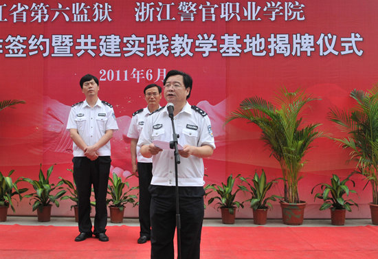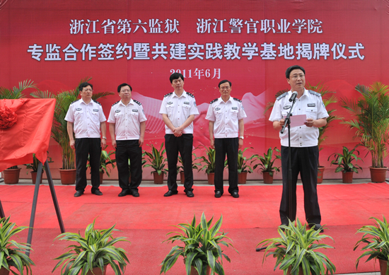 2011年6月21日,浙江警官职业学院与浙江省第六监狱专监合作签约暨共建实践教学基地揭牌仪式在第六监狱隆重举行,浙江省司法厅党委委员、浙江警官职业学院党委书记周祖勇、院长黄兴瑞、副院长金川,浙江省第六监狱党委书记、政委吴国余、监狱长李伟民与其他领导班子成员,以及学院相关职能处室负责人与刑事司法系负责人及骨干教师、学生代表参加了揭牌仪式。揭牌仪式由浙江警院副院长金川主持。