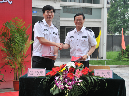 浙江省第六监狱是部级现代化文明监狱,创造了连续17年无服刑人员脱逃、无非正常死亡、无重大狱内案件、无重大传染疾病的光辉记录,是浙江省保持监管安全时间最长的监狱,监管改造工作成绩斐然;浙警院刑事执行专业是国家示范性高职院校重点建设专业、中政委招录培养体制改革首批试点专业、浙江省高职高专教育特色专业,师资厚实,教学科研能力较强,双方向来有着良好的合作关系。为进一步推动刑事执行专业建设,为监狱行业输送更加优秀的人才,同时为进一步提高省第六监狱监管改造工作的水平,双方决定在专业、课程、基地、师资、应用课题研究、业务培训、职业标准开发等方面实施共建,实现双方共建专业、共育人才、共享成果,达成双方优势互补,互利双赢。双方都希望以专监合作签约为新的起点,充分利用好共建实践教学基地,深化合作,共同提高,并进一步推动浙江省监狱人民警察队伍建设与监狱工作的发展。