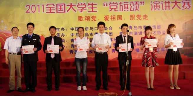 为隆重纪念中国共产党成立90周年,继承和发扬党的优良传统和作风,激发当代大学生爱党、爱国、爱人民的满腔热情,努力提高大学生的综合素质和演讲水平,培养和造就优秀人才,由全国演讲与口才协会、中共青岛市委宣传部共同主办的2011全国大学生“党旗颂”演讲大赛于2011年6月17日至19日在山东省青岛市举办。