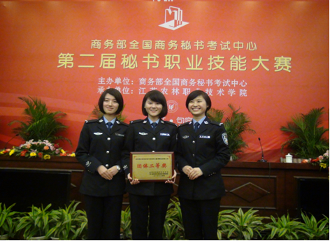 2011年11月11-13日,由商务部全国商务秘书考试中心主办的第二届商务秘书职业技能大赛在江苏农林职业技术学院举行,全国27所在文秘人才培养方面具有鲜明特色的高校应邀参赛,本科院校与高职院校学生同台竞技,共计32支代表队,120多名选手展开了激烈的角逐。我院法律文秘专业作为省级特色专业应邀参赛。应用法律系选拔了6名学生、组成两支代表队参加了大赛。代表队表现出色,分别获得了1项团体一等奖、1项团体二等奖、1项个人一等奖、3项个人二等奖、2项个人三等奖以及1项书法单项三等奖的好成绩,向全国各参赛高校的老师和同学们展示了我院学子的实力和风采。