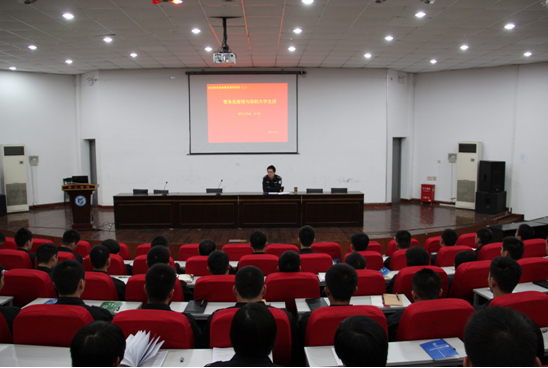 2012年3月21日晚,学院学生工作处王钧老师在院报告厅为2011级试点新生作了关于“警务化管理与你的大学生活”的讲座。