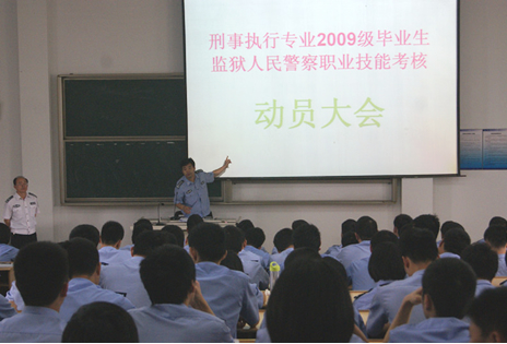 2012年5月22、23日,刑事司法系对2012届刑事执行专业毕业生进行了监狱人民警察职业技能考核,考核内容为监狱文书制作、罪犯出收工管理、罪犯个别教育、罪犯集体讲评教育等内容。刑事司法系全职兼职教官、部分专业教师参加了考核活动,本次考核还邀请了省二监、四监、六监等单位的8名行业专家担任考官。6月4 日―5日,中政委试点班(含监狱管理专业和监狱信息化专业方向)84名毕业生也参加了考核。同期,行政执行(劳教管理)专业和社区矫正专业也邀请行业专家对本专业毕业生进行了职业技能综合考核。今年还尝试对工商企业管理(监狱企业管理方向)本科毕业生进行了职业技能考核。通过毕业前职业技能考核,刑事司法系及信管系总共有428名学生顺利完成考核,取得监狱人民警察、劳教人民警察和社区矫正专职工作者职业技能证书。
