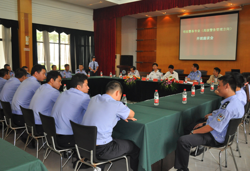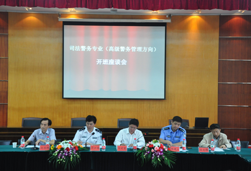 2012年9月19日下午,司法警务专业(高级警务管理方向)开班座谈会在行政楼第三会议室举行。省法官进修学院吴道富院长、省司法警察总队陈建民副总队长、省法官进修学院赵永伟主任、张志伟副调研员,我院黄兴瑞院长、法律系系主任唐长国教授等,以及高级警务管理班的全体学员参加了此次座谈会。