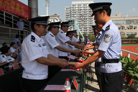 宣誓毕,钱美兰副院长宣读了警事训练表彰决定,对新生警事训练优秀教官、新生警事训练优秀标兵、新生警事训练优秀区队进行了表彰,院领导为获奖代表一一颁奖。