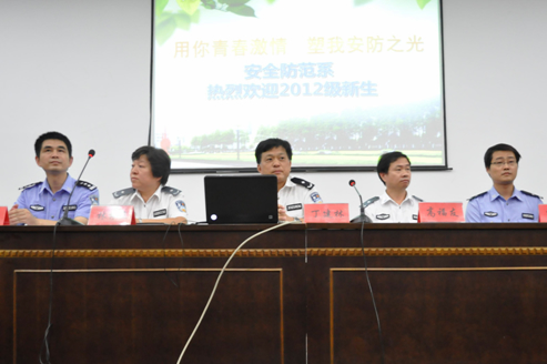 开展以“用你青春激情,塑我安防之光”为主题的2012级新生见面会暨系情介绍会。通过介绍会,同学们认识了系领导以及各专业负责人,并且对系的建设发展过程、专业设置、机构设置及目前建设成果有了进一步的认识。