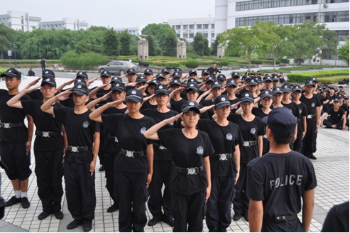在17名2011级小教官的带领下,安全防范系2012中队全体新生坚持训练,热情饱满、态度端正,他们用黝黑的皮肤、挥洒的汗水、嘹亮的口号、整齐的步伐证明着警院第一课的成果,书写了“文武安防”新篇章。