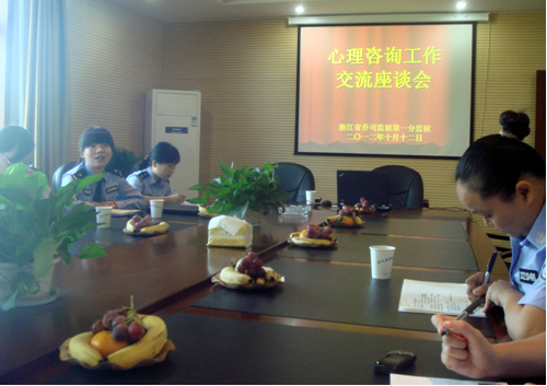 2012年10月12日上午,刑事司法系周雨臣主任、科研处邵晓顺副处长、教务处马立骥副处长、系骨干教师韩华、沈�等一行五人赴浙江省乔司监狱第一分监狱进行罪犯心理咨询与矫治的调研并洽谈共建心理矫治实践基地事宜。