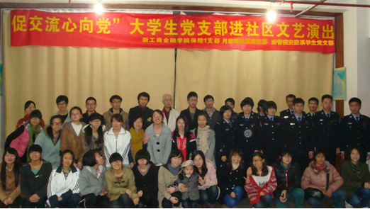 为深入学习贯彻党的“十八”精神,2012年11月下旬,安全防范系学生党支部、月雅苑社区党支部、浙工商金融学院保险一支部联合举办以“温情进社区、走访老党员、思忆我党旧时光”主题活动,走进社区。