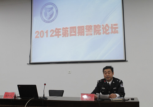 12月21日下午,学院举办第四期警院论坛。论坛内容有:省政府参事室党组成员、副巡视员章斐龙作党的十八大精神解读;刑事司法系副主任殷导忠作赴新加坡参加“专业负责人赴海外进修”情况体会汇报;应用法律系法律事务教研室主任胡晓军老师作赴省三监参加暑期岗位大练兵情况汇报。