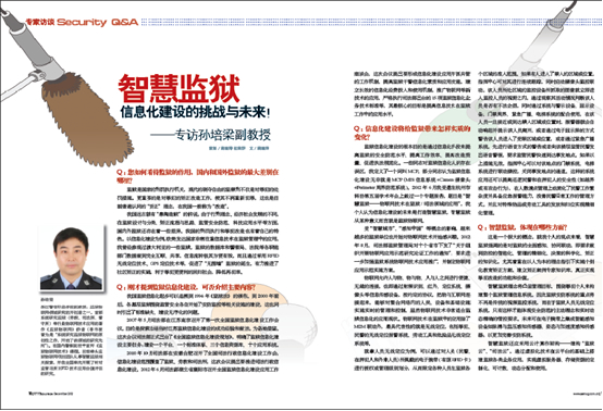 此外,在该期的“行业观察”栏目编辑撰文“集成+联网+共享:司法行业信息化进程提速”中,在“物联网,试水监狱安防”章节里,也大量采用了孙培梁老师关于监狱物联网的访谈内容。