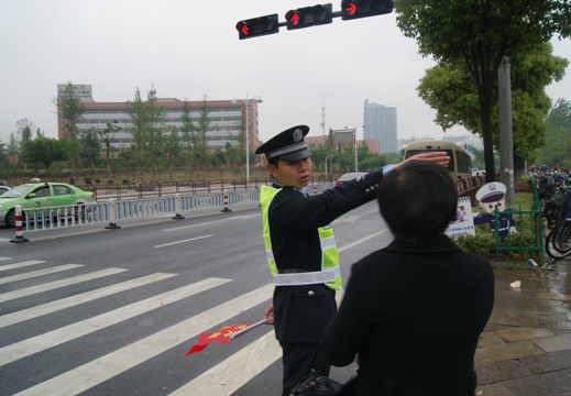 4月20日,安全防范系几十名志愿者在杭州公安局交通警察局下沙大队的协助和配合下,开展了下沙高校园区志愿者交通服务活动。