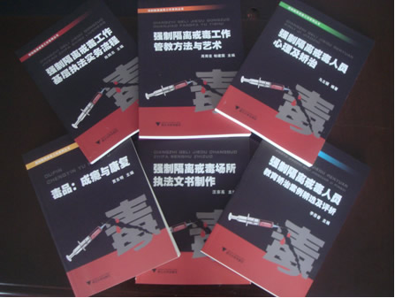 “强制隔离戒毒工作系列丛书”是学院“2010年教师服务行业能力提升工程项目”的重大项目研究成果。该系列丛书包括《强制隔离戒毒工作基层执法实务流程》(陈鹏忠主编)、《强制隔离戒毒工作管教方法与艺术》(周雨臣、柏建国主编)、《强制隔离戒毒人员心理及矫治》(马立骥主编)、《强制隔离戒毒人员教育矫治案例精选及评析》(李蓓春主编)、《强制隔离戒毒场所执法文书制作》(汪宗亮主编)、《毒品:成瘾与康复》(贾东明主编)等6部书籍,对强制戒毒执法流程、教育矫治方法与艺术、心理矫治技术、文书制作技术、教育矫治成功案例评析、毒品介绍及成瘾机理等方面做了较为系统的介绍和论述,对强制隔离戒毒场所工作民警及戒毒康复管理专业人士具有较强的理论和实践指导意义。