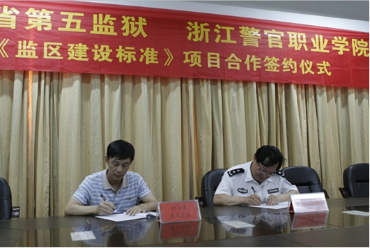 6月8日,我院与省五监举行监区建设标准课题研究座谈暨合作协议签订会,浙江省司法厅党委委员、学院党委书记周祖勇和省五监党委书记、政委王辉就双方共同开展课题研究签订了合作协议。