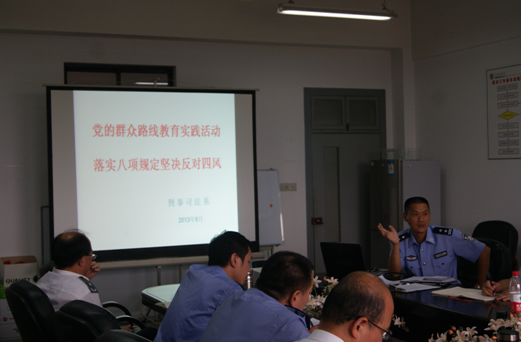 系党总支副书记朱乐强同志详细讲解了中央八项规定、六项禁令,省委28条办法、六个严禁及省司法厅机关工作人员公务活动“十不准”,并以“海南省卫生学校违规用公款购买月饼�”、“山西6名干部违规参加宴请娱乐活动”、“云南丽江公安局原党委委员秦朝富参与赌博”等多个案例,直观、生动地启发和教育了广大教工。同时,结合本系实际,给全体教师提出了三点要求:一是做一个有政治意识的人。党的群众路线教育实践活动主要对象是处级以上领导干部,但所有教工、学生应在活动过程中有所启发、有所教育。结合当前学院的实际情况,我们的群众路线教育实践活动不是“整风”运动,而是“树风”行动,领导干部要有好的作风,教师要有好的师风,学生要有好的学风,这才是活动的根本意义所在。二是做一个明白人。明白自己的岗位职责要求,正视自己的不足和失误,坚守法律、道德的底线,勇于担当、敏于审视、严于律已。三是做一个合作的人。推动我系的专业建设、学生管理、行政等工作要靠大家的共同努力,信念坚定才有活力,密切合作才能发展。