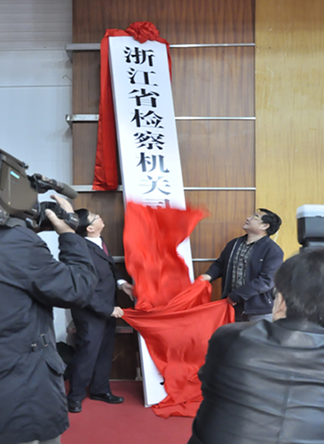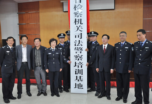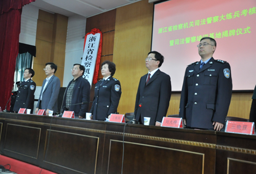 浙江省检察院副检察长王祺国和省司法厅党委委员、学院党委书记周祖勇共同为培训基地揭牌。