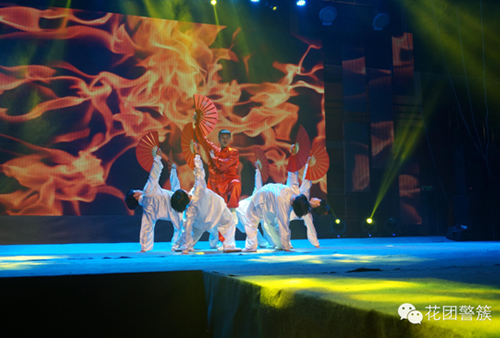 武术表演《警武英雄》刀枪剑戟,硬气十足,彰显男儿血性;太极红扇,以柔克刚,舞出女子英气。
