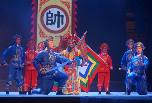 越剧《穆桂英挂帅》用唯美典雅的唱腔,展现警校女生巾帼不让须眉的气概。