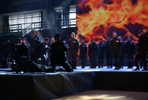 枪械表演《再踏征程》展现警校男生铁骨铮铮,保家卫国的勇气,也表达了学院而今迈步从头越的决心。
