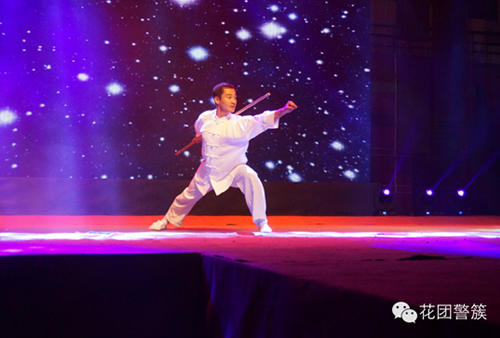武术表演《警武英雄》刀枪剑戟,硬气十足,彰显男儿血性;太极红扇,以柔克刚,舞出女子英气。