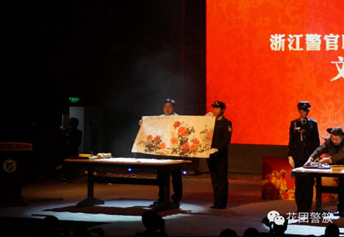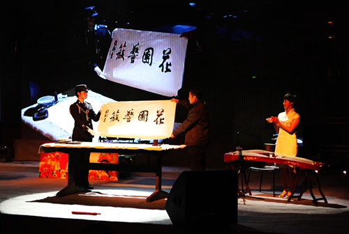 晚会在悠扬的古筝声中拉开帷幕,学院政治部周国新主任、校友赵夫生先生挥毫泼墨,表达对学院美好的祝福。