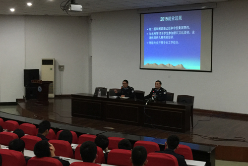 大队长邓潮荣进行了动员教育讲话。一是分析了2015大学生就业形势,通报了教育部和省教育厅以及学院就业启动会的相关精神,要求毕业生认清就业严峻的形势。二是通报了大队就业工作的安排以及2015就业工作的流程,同时演示了就业协议书的填写方法。三是分析了2015届信管系毕业生八类就业心态,要求毕业生“心态良好、理性就业”。四是强调了实习安全,通报了6起以往毕业生发生过的实习期间的安全事故。