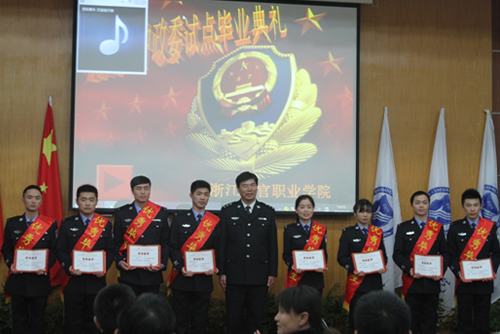 1月13日下午,学院举行了2015届中央政法招录培养体制改革试点监狱管理专业学生毕业典礼。学院党委副书记、院长黄兴瑞出席典礼并致辞。教务处处长冯萌、学生工作处处长吕欣、公共基础部主任祝成生、院团委副书记应方淦、刑事司法系主任周雨臣、刑事司法系党总支副书记朱乐强等出席典礼仪式。毕业生代表分别为到场的领导、老师献上鲜花,以谢师恩。