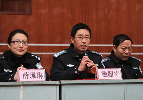 随后,戴韶华老师作为辅导员代表发表发言。他说,辅导员工作将始终围绕“指导”和“服务”两个中心而展开,聆听学生的意见和建议,增进相互之间了解沟通,使学生三年警校生活更富有意义,并祝愿学生健康快乐、不断进步。