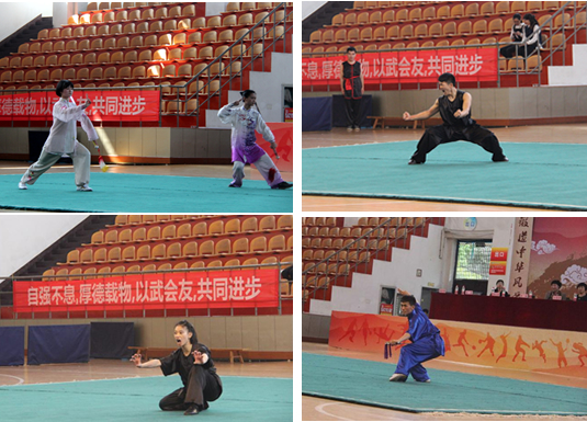在本次武术比赛中,各大院校人才济济,高手如云,既是一场武术竞技的比拼,更是一次切磋学习、取长补短的交流。经过激烈角逐,李丹丹同学获得女子42式太极拳冠军、42式太极剑亚军,林广鹏同学获得男子42式太极剑第三名、42式太极拳第七名,沈冬云同学获得42太极拳第五名、42太极剑第四名,程玉勤同学获得女子长拳季军,张宇红、罗婷同学获得女子南拳第三名、第四名,黄杰豪、余春节同学获得男子剑术第三名、第四名,徐敏、朱萧同学获得男子刀术第五、第八名,朱萧同学获得南拳第三名,余春节获得棍术第四名的好成绩。