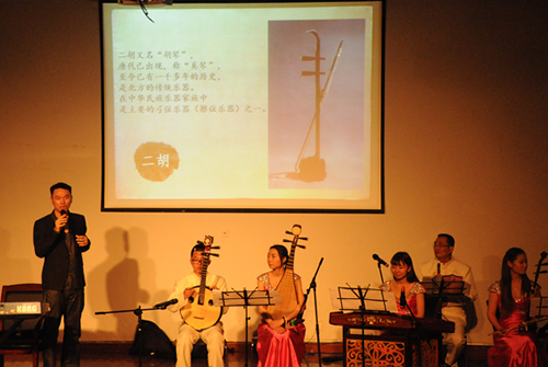 演奏家们以一曲《电影音乐串烧》拉开了演出的序幕,接着,著名音乐人张亦诚老师带领同学们认识民族传统乐器,细腻的琵琶,深沉的二胡让同学们叹为观止。随后《花儿为什么这样红》、《天空之城》、《红色娘子军连歌》、《洪湖水浪打浪》、《弹起我心爱的土琵琶》、《映山红》等10余首耳熟能详的曲目在影片片段的映衬下依次上演,独特的演奏风格、配合默契的演奏团队,使得在场师生犹如身临其境、回味无穷,深深地感受到了民族音乐的美。