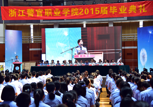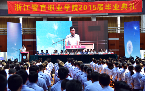 周祖勇在典礼上代表学院致辞,向2015届991名毕业生表达了衷心祝贺。他指出,毕业意味着收获。经过1011天的警院学习训练,2015届毕业生砥砺了品格,掌握了知识,练就了技能。3年来,在杭州西湖国际烟花大会安保执勤、全国商务秘书技能大赛、浙江省全国信息技术应用水平大赛、“蓝桥杯”全国软件专业人才设计与创业大赛、“挑战杯”大学生创业计划竞赛等各类重大社会活动、竞赛中取得了优异的成绩,留下许多动人、拼搏的记忆时刻。