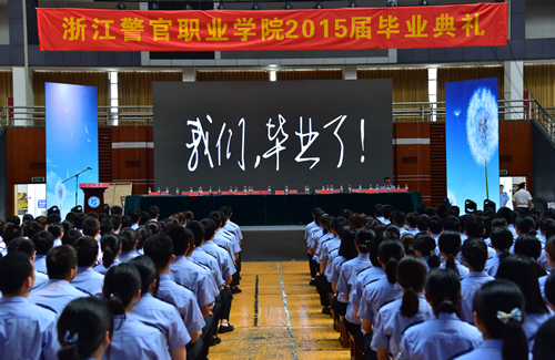 6月12日上午,学院在警体馆隆重举行2015届毕业典礼。省司法厅党委委员、学院党委书记周祖勇、学院党委副书记楼一维、纪委书记张平、副院长金川、副院长钱美兰等学院领导出席典礼仪式。四系两部和各职能处室相关负责人,教师代表、学管干部以及毕业生家长代表参加了典礼。