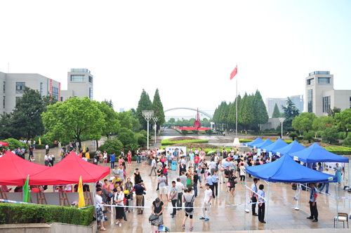 9月7日,是我院2015级新生报到的日子。清晨,尽管天空下着瓢泼大雨,但依然挡不住我院校园内沸腾的气息。迎新现场彩旗飞扬,一派热闹的景象,迎新工作如火如荼、井然有序地进行着。